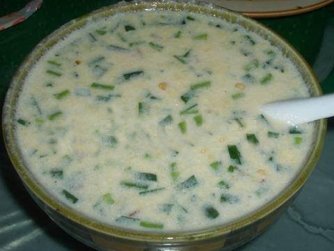 名稱: 合渣 介紹: 合渣是土家極喜歡的菜肴。以黃豆粉摻青菜葉溫火煮,味美易咽,營養(yǎng)豐富。