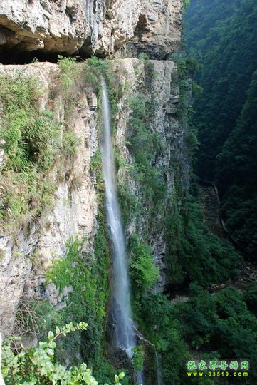 【神泉峽】有請各位朋友注意,我們行走到這里,您會發(fā)現(xiàn),峽谷在這一段猛然一下子收縮了,變得越來越窄了。這段很窄的峽谷叫做神泉峽,總長300余米。在神泉峽,我們要穿過兩處水簾瀑,請大家保護好自己的攝像機、照相機等貴重物品,以免打濕受損。同時還要注意腳下,慢慢行走,因為這一段的木板棧道很滑。