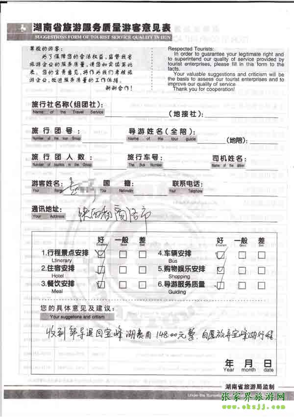 2010年7月18日陜西趙先生旅游質(zhì)量反饋