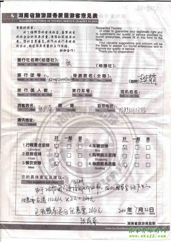- 游客夏先生為表揚導(dǎo)游李姣姣寫來表揚信致我張家界... [14811]