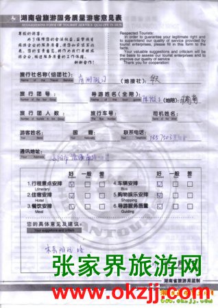 2010年5月12日岳陽(yáng)南湖假日旅行社旅游質(zhì)量反饋