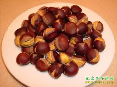 板栗與尖栗(俗名“漩栗”),山毛櫸科,是木本植物,主要含淀粉、糖等,在武陵源區(qū)各景區(qū)都有廣泛的分布。它們是多年生落葉喬木,一般樹高3至5米到10米左右。栗樹春末夏初開花,夏天生長,秋天結實。果實成球形,外殼帶刺,里面栗子光滑成紫色,所以農家有“娘被千針衫,兒穿紫龍袍”的謎語。板栗成熟以后,外殼便自然張開,栗子隨風脫落。如在板栗林里撿栗子,倒是一大樂趣。“白露”過后,板栗大量成熟,滿樹的栗球都張開了笑口,一遇到颯颯吹來,栗子便唏唏唰唰唰隨風脫落,滾進山溝里或低洼處,如果運氣好,可以撿到一窩一窩的板栗,有時可以撿幾十斤。