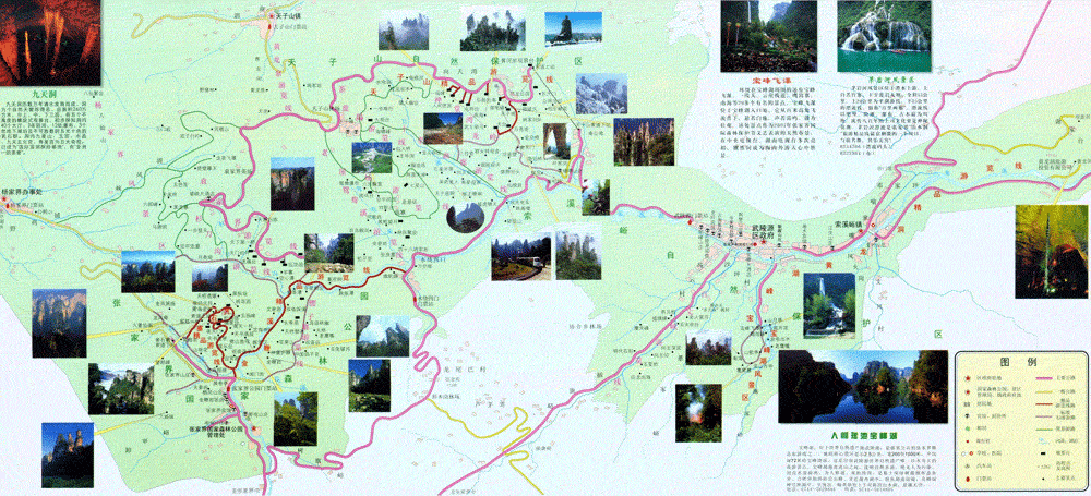 索溪峪風(fēng)景區(qū)風(fēng)景奇特、門類齊全,山石、森林、湖瀑、溶洞、云海、珍禽異獸等溶為一體,構(gòu)成了一個完整的旅游體系,也是整個武陵源風(fēng)景區(qū)景點類別最為豐富之處。