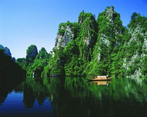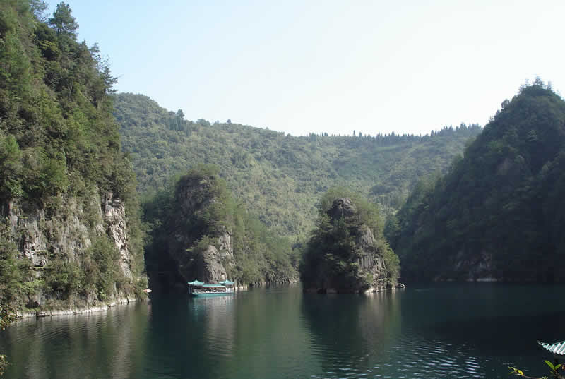 其位于武陵源區(qū)城南1.5公里處,是武陵源風(fēng)景名勝中的精品景點(diǎn)。它是一座罕見的高峽平湖,四面青山,一泓碧水,風(fēng)光旖旎,是山水風(fēng)景杰作。在此蕩舟,還可見到湖心島上“玉瓶開花”、“十女梳妝”、“金龜戲水”、“青蛙鬧春”等佳景。 寶峰湖是一個截流筑壩而成 的人工湖,深72米,長2.5米公里, 以其秀麗的湖光 水色與幽野的洞天情趣成為武陵源水景風(fēng)光的代表之 作。湖中有兩座疊翠小島,近岸奇峰屹立,峰回水轉(zhuǎn)。