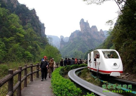 在十里畫廊盡頭。這里怪石嶙峋,林木蔥籠,常有三五成群成百上千只猴子在此會集,故稱猴子坡。游人至此,或樹叢之中,或山間古道,常見群猴在懸崖絕壁上攀援嬉戲,有的盲目在藤蔓上攀跳,有的獨坐巖石抓耳搔腮。惹得游人眉開眼笑,興味無窮。 從南天門向?qū)γ嫱ィ梢娙菹魇?,形如美女,婷婷玉立,故?ldquo;三女峰”。三女峰尤以第三峰奇妙,于石峰胸部有一直徑約1米乳眼, 由孔中可窺山后天光,既像高懸在石壁上的明鏡,又像少女佩帶著一枚晶瑩透明的玉飾。 過南天門繼續(xù)登山約200注,有一岔道口,叫月亮埡, 往右便是天子山石家檐景區(qū),向右斜上則通天臺。天臺海拔1020米,有東西兩個觀景臺。東臺為一懸空巨石,四周雜樹叢生,古松倒掛,是觀日出的理想之所。西臺俯視西海最妙,但見幽深莫測的峽谷中,千峰聳立,戴翠披綠,秀麗的景色盡覽眼底。 十里畫廊觀光小火車票價:單程30元/ 人,雙程40元/人。優(yōu)惠門票價格單、雙程由現(xiàn)行每人次14元和19元調(diào)整為18元和24元。 優(yōu)惠政策規(guī)定:根據(jù)有關(guān)文件規(guī)定,十里畫廊觀光電車門票價格對身高不足1.2米的兒童實行免費;對身高1.2米至1.5米的未成年人實行優(yōu)惠;對24歲以下學(xué)生憑學(xué)生證享受優(yōu)惠;符合《殘疾人實用評定標(biāo)準(zhǔn)》的殘疾人、60周歲以上老人、現(xiàn)役軍人、烈士直系家屬、持有民政部門頒發(fā)的《城鄉(xiāng)居民最低生活保障金領(lǐng)取證》的人員憑有效證件享受優(yōu)惠;此外可在特定日期對特定群體(如教師節(jié)對教師、建軍節(jié)對軍人等)實行減免優(yōu)惠。 湖南唯一一家全國百強國際旅行社、湖南五星級旅行社:華天國際旅行社 品牌卓著,信譽度高,是游客理想選擇接待單位。