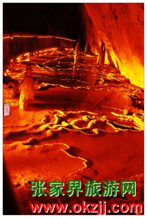 早上9:40乘坐百龍電梯(56元,好貴)只花1分多鐘就到山下,站在電梯里透過玻璃還可以看到一大勝景:神兵聚會。今天山里下雨,到處一片朦朧,坐車到水繞四門隨意看看,所謂四繞水門,是同時有金鞭溪,索溪,龍尾溪,鴛鴦溪四水同流。十里畫廊沒水,聽說景點一般,為了趕時間,決定放棄了這個景點,直接坐車出景區(qū),然后包車去黃龍洞。 11點我們到了黃龍洞,穿著土家族服裝的講解員帶我們進洞(一般情況,一個講解員帶很多人,我們暗自高興)黃龍洞長13公里,高達160米,分四層,屬石灰?guī)r地下河侵蝕型洞穴。兩層水洞與兩層旱洞上下縱橫,形成洞下洞。石乳、石柱、石筍、石幔、石琴、石花,如水晶玉石,琳瑯滿目,異彩紛呈,美不勝收,有“地下迷宮”之美稱。我們首先通過一條幽深的百米長廊,長廊的盡頭有兩座天然石門,一道是幸福門,一道是長壽門,如果先從哪個門進去,之后就要從另一個門出來,這代表著你的一生會幸福長壽。過了這兩道門,就是千奇百怪的石筍,石柱,石鐘乳等。我們隨著導游穿過龍舞廳,廳里有無數(shù)根石鐘乳。之后,來到了黃龍洞的響水河。接著我們乘上游洞的小船,聽著導游的講解,沿途的七彩的霓虹燈照在洞壁上,夢幻般的感覺。下船后,緊跟導游,經(jīng)過一個又一個景點,聽著相關(guān)的故事,感受著這自然的神奇。洞中的景點有黃土高坡、花果山、石琴山、龍宮大廳等等。黃土高坡是我國已開發(fā)溶洞中規(guī)模最大的一片石瀑布群,南北寬96米,東西寬105米,落差40米,非常壯觀,由于它呈黃土色,所以取名為黃土高坡。在花果山你能看見各種鐘乳石化成的形態(tài)各異的石猴。而龍宮大廳的“定海神針”是黃龍洞最高的一根石筍,高19.2米,以它每100年長1公分來推測,就知道它的年紀了。走完了四層,看了那么多奇特的石筍,石柱,有的象臥松,有的象猴子,有的象火箭,有的象生姜,有的象手指……不得不感嘆大自然的神奇。 走出黃龍洞已經(jīng)12:30,向?qū)覀內(nèi)コ燥垼詈筮@一頓安排得很豐盛,我們吃得很開心,也很感謝這位樸實的好向?qū)?,這3天的行程讓我們真正領(lǐng)略到張家界的美、黃龍洞的奇!