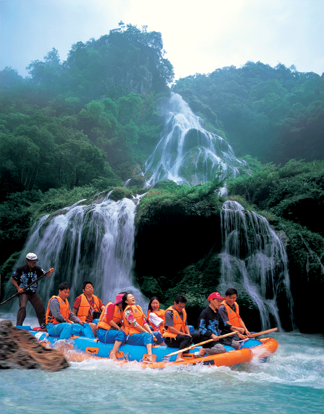 到了大門口,彭導(dǎo)幫我們?nèi)ベI了門票,248元/人,共花去496元。彭導(dǎo)先前給我們預(yù)算是,按最經(jīng)濟(jì)的帳目來算的,470元/人(包括進(jìn)山大門票,但不包括索道、天梯、酒水等),他說出門在外,能節(jié)約點(diǎn)就節(jié)約點(diǎn)。當(dāng)然他也知道我們可能會(huì)超出這個(gè)標(biāo)準(zhǔn),如果有必要,到時(shí)可以再自己花費(fèi)。買了門票后,我給了他500塊,算是這幾天的費(fèi)用,他說,不是說好是每人470的嗎,你應(yīng)該是給我444塊。我說,上次謝謝您的關(guān)心,這次不能讓你太吃虧了。彭導(dǎo)說,那今天晚上我叫店家給你們加個(gè)菜,呵呵呵。 下午,我們玩了森林公園中的黃石寨和金鞭溪??戳颂鞎鴮毾?、點(diǎn)將臺(tái)、南天柱、摘星臺(tái)、六奇閣,五指峰、金鞭溪、金鞭巖、文星巖、紫草潭、千里相會(huì)等,彭導(dǎo)果然是彭導(dǎo),有著二十年的導(dǎo)游經(jīng)驗(yàn)的他就是不同凡響啊,個(gè)個(gè)景點(diǎn)都是如數(shù)家珍,說得是頭頭是道。(據(jù)網(wǎng)上說,有些導(dǎo)游是只帶路不講解,讓人只是看看表面,而無法去領(lǐng)略張家界那些精美絕倫的凄美傳說。我個(gè)人認(rèn)為張家界的傳說也是應(yīng)該值得每一個(gè)游人去了解,去領(lǐng)略的,如果你來張家界沒有聽到這些傳說的話,那一是你的導(dǎo)游的水平問題,二是你的一個(gè)很大的遺憾,你來張家界的經(jīng)歷是不完美的),什么龍蝦花的來歷,金鞭巖的前身,秦始皇和孟姜女與張家界的關(guān)系。晚上乘百龍電梯上袁家界(張家界的核心)一家旅館住宿。晚餐時(shí),一葷一素一湯。我們吃著吃著,老板笑咪咪的搬上一鍋火鍋,當(dāng)?shù)氐耐岭u火鍋。我們很詫異,我說,我們沒有點(diǎn)這個(gè)菜??!老板,你是不是弄錯(cuò)了?老板說,這是你們彭導(dǎo)叫我特地做的。我突然明白了,一定是彭導(dǎo)是為我多給的那50多塊錢了。由于長(zhǎng)途奔波,加上下午又走了很多路,晚上洗了一個(gè)澡就睡下了。山里的氣溫很低,在這全國(guó)都如火爐時(shí),張家界的晚上卻要蓋很厚的被子,真是一塊寶地啊。 第二天早上,我們參觀了袁家界的風(fēng)景,其中最有名的當(dāng)然數(shù)天下第一橋,這是由兩座巖石山的山頂自然生長(zhǎng)在一起,非人所能為也。天下第一橋的稱號(hào)當(dāng)之無愧啊。當(dāng)然在袁家界,后花園也是不能不看的。張家界號(hào)稱“峰三千,水八百”,在這里你就能明顯的感覺到這句話的前半句是那么的實(shí)在??赐陱埣医绲暮诵脑医?,我們乘車到了天子山(張家界景區(qū)內(nèi)的最高的地方)。玩了賀龍公園、御筆峰、仙女散花、西海、石船出海、仙人橋、天子廟、十里畫廊、一步難行。不巧的是,那天山上下了一點(diǎn)陣雨,雨后一條彩虹掛在天上,更重要的是山上起了一點(diǎn)霧,使整座山都籠罩在霧中,若隱若現(xiàn),看上去就象是在云海中,好象老天特地配合我們似的,難得一見的西海等正好被我們趕上了。彭導(dǎo)告訴我們,這樣的機(jī)會(huì)是很難得的,可能是張家界為了感謝我的再次到來,給了我一個(gè)特別的禮物吧。我大笑。晚上趕到昨天住的地方去住宿。不提。 第三天我們玩了烏龍寨、三道鬼門關(guān)、天波府、一步登天、空中走廊等。主要是在楊家界的景區(qū)范圍內(nèi)。本來是第三天下午要去鳳凰的,但是考慮到我和女友小嵐好容易來張家界一次,盡量將張家界的能玩的地方去玩一下。我也曾聽說張家界不僅峰三千,水八百,同時(shí)天然溶洞也是非常不錯(cuò)的,據(jù)說其中一個(gè)溶洞為一根鐘乳石投保了1個(gè)還是2個(gè)億,(不怎么記得了,呵呵。)而且在張家界的宣傳資料上還看到了有漂流,打水仗等非常刺激的項(xiàng)目。我于是問一下彭導(dǎo),能否幫我們聯(lián)系一下,彭導(dǎo)很爽快的答應(yīng)了,他幫我們聯(lián)系了九天洞和茅巖河的公司。在彭導(dǎo)的上下打通下,本來是315元/人的行價(jià),硬是給用278元/人的價(jià)格給拿下了。當(dāng)搞定這些時(shí),已經(jīng)外面是天黑一片了(彭導(dǎo)家就在楊家界)彭導(dǎo)說他想回家看看,明天我們會(huì)和一群人去看洞和漂流,他就不陪我們?nèi)チ?,明天下午他?huì)在張家界市區(qū)去接我們,到時(shí)會(huì)有車送我們?nèi)ナ袃?nèi)。然后他會(huì)送我們上去鳳凰有車,并幫我們?nèi)ヂ?lián)系鳳凰的朋友來招待我們。 第四天,清晨我們便踏上了汽車去看洞漂流。號(hào)稱亞洲第一大洞的九天洞果然是名不虛傳,我們把它現(xiàn)在開發(fā)的部分粗略的走了一下,就花了我們近月4個(gè)小時(shí),洞中鐘乳石遍地,在五彩斑闌的燈光下,顯得晶瑩剔透,閃閃發(fā)光,讓人感覺到是到了水晶宮一般,地下還有陰河,遠(yuǎn)處通知海(據(jù)說)。對(duì)了,洞中溫度很低,常年在10多度。讓人在其中感覺到一陣陣寒意。故想進(jìn)去的朋友記得多穿點(diǎn)衣服,以免著涼,切記。我們當(dāng)時(shí)就是吃了很大的虧,從洞中出來時(shí),小嵐就在點(diǎn)喀漱。下午來到茅巖河漂流。上船前看到有人賣水瓢,心中不免奇怪。雖說,張家界金鞭溪的水可以喝,但也不是每一條河的水都能喝啊?于是上前去問,一打聽才知道,這瓢不是用來舀水喝的,而是用來打水仗的。本來因?yàn)樾褂悬c(diǎn)小感冒,我們打算保持中立,但一看到各位船友們個(gè)