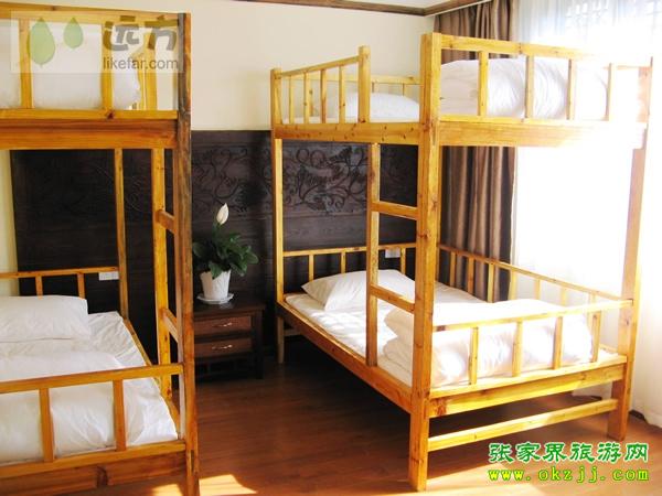 張家界八戒國際青年旅舍位于城市最中心地帶、國家AAAA景點大庸府城的石牌坊邊。整個旅舍為復(fù)式結(jié)構(gòu)的仿古建筑,房間布置按照三星標(biāo)準(zhǔn),結(jié)合少數(shù)民族特點,全部采用原木家具,極具古樸、清新、淡雅之色。三間別墅標(biāo)間和一間8人間,窗戶面對的就是市區(qū)最高峰——天門山。兩間雙人間和兩間大床房以及三間4人間,推開窗戶即可俯瞰整個大庸府城,并可在夜晚免費(fèi)欣賞原汁原味的土家風(fēng)情歌舞表演。旅舍治安條件極佳,有24小時嚴(yán)格的保安巡查。